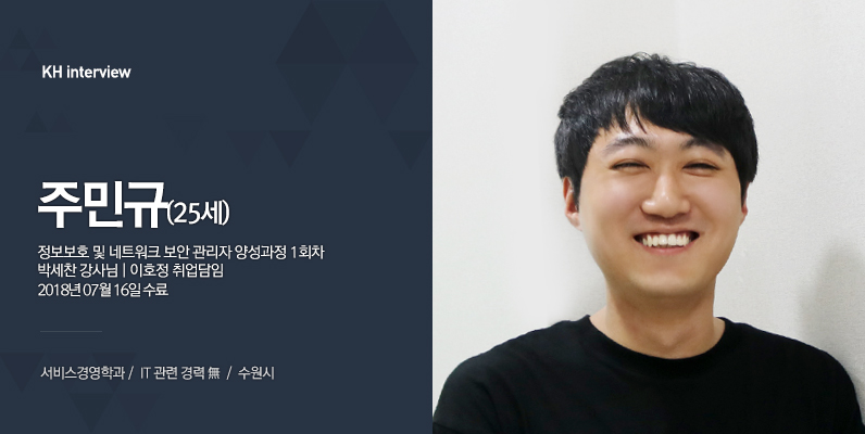 안녕하세요. 정보보호 및 네트워크 보안 관리자 양성 과정을 수료하게 된 주민규라고 합니다.