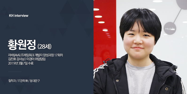 저는 사무직으로 직장생활을 했었는데요. 제가 하던 업무는 자신만의 기술이 두드러지지 않다 보니 커리어를 쌓기가 어려운 부분이 있었어요. IT분야는 기술직이다 보니 경력이 쌓이는 만큼 전문가로 성장할 수 있다는 생각에 도전하게 됐습니다. (웃음)