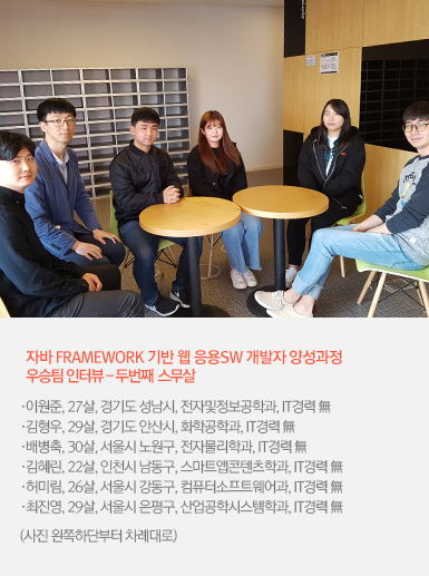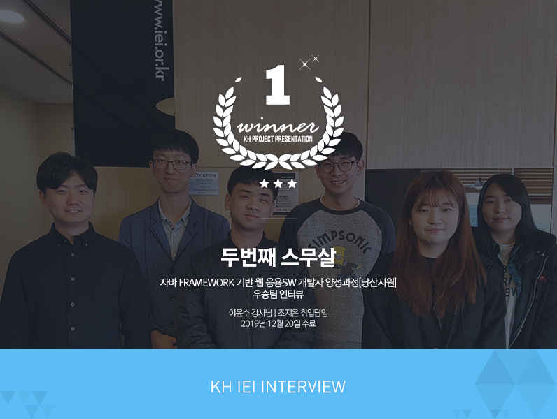 김형우 | 사실 저는 저희가 1등은 할 수 없을 거라 생각했어요. 그런데 전체적으로 자료를 통합한 내용을 보니 모든 게 통일감 있게 구현되었고 세세한 부분까지도 잘 맞더라고요. 저희 개개인 하나로서는 절대 할 수도 없었던 일이지만, 서로 협력했던 게 큰 역할을 한 것 같아요. 팀장인 진영씨도 잘 이끌어가 주었지만, 팀원들 하나하나 서로 도와주는 분위기였거든요. 사회에 나가서도 서로 협력해야 할 일이 많을 텐데 프로젝트를 하면서 많이 배우게 됐습니다! |