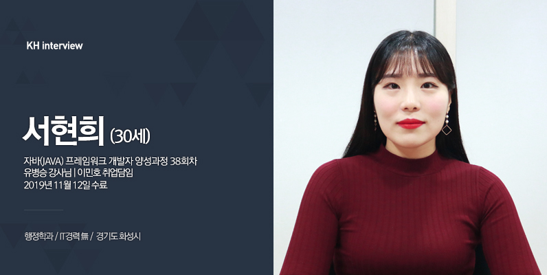 교육기관을 많이 알아본 건 아니지만 KH에 처음 왔을 때 꽂혔어요. (웃음) 최우수훈련기관이라는 점도 믿을만하고 강남역 부근이다 보니 동탄에서 1시간이면 올 수 있는 차편도 있어서 선택하게 됐습니다.