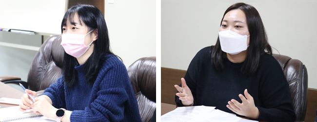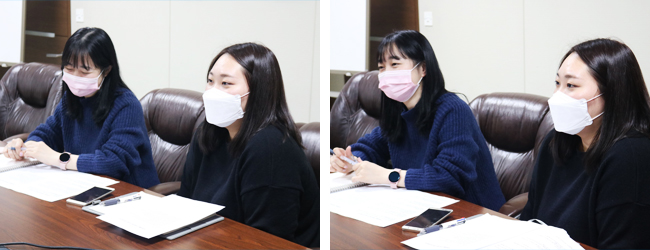 신민채 | 일단은 업무지시대로 일을 하고 나중에 면담을 요청해요. ‘이때는 이 방향이 좋지 않았을까요?’ 하면서 소통을 하려고 해요. 말을 하지 않다 보면 쌓이기도 쉽고 상대방의 의사를 알 수 없잖아요. 그래서 소통을 하면서 내 생각도 말하고 상대방의 입장도 생각해보는 것 같아요. 그러다 보면 불만 사항이나 문제도 좋은 방향으로 해결이 되더라고요. |