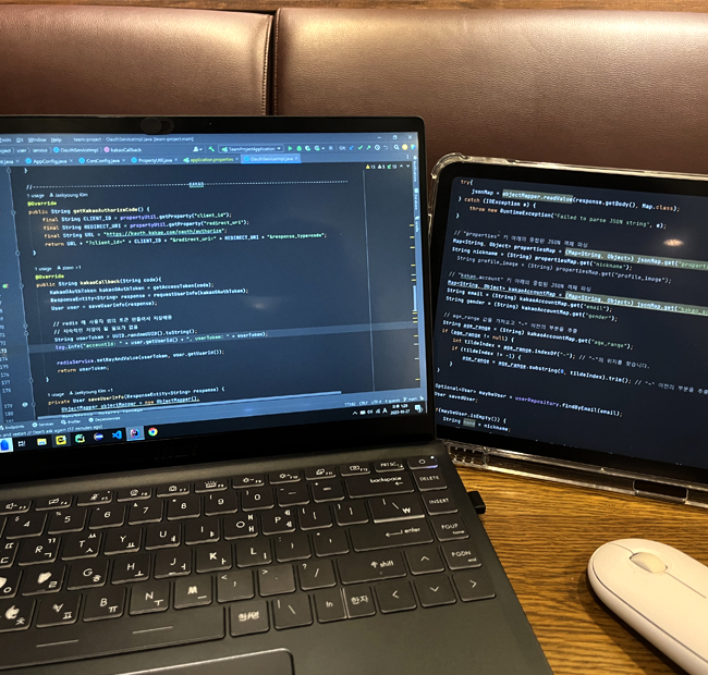 같은 수업을 듣는 동기들이 모두 친절하고 열정적이어서 모르는 내용에 대해서 서로 물어가면서 돕고 알려주고 했던 것 같아요! 실력 좋으신 분들이 워낙 많으셔서 어깨 넘어 슬그머니 보면서 동기들에게도 많이 배웠습니다. |