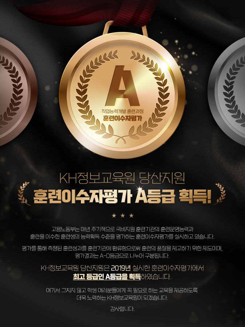 KH정보교육원 당산지원 훈련이수자평가 A등급 획득