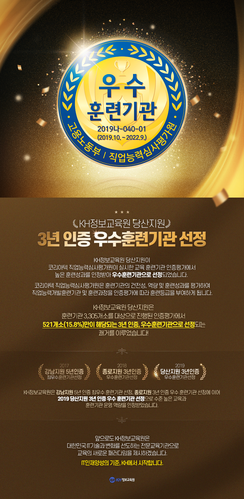 KH정보교육원 당산지원 3년 인증 우수훈련기관 인증
