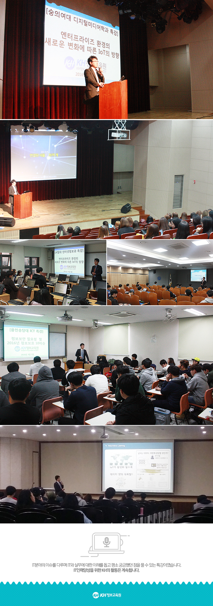 지난번 소개해드린 바와 같이 대학교 개강일인 3월 2일 부터 KH의 ICT특강이 진행되고 있습니다.
