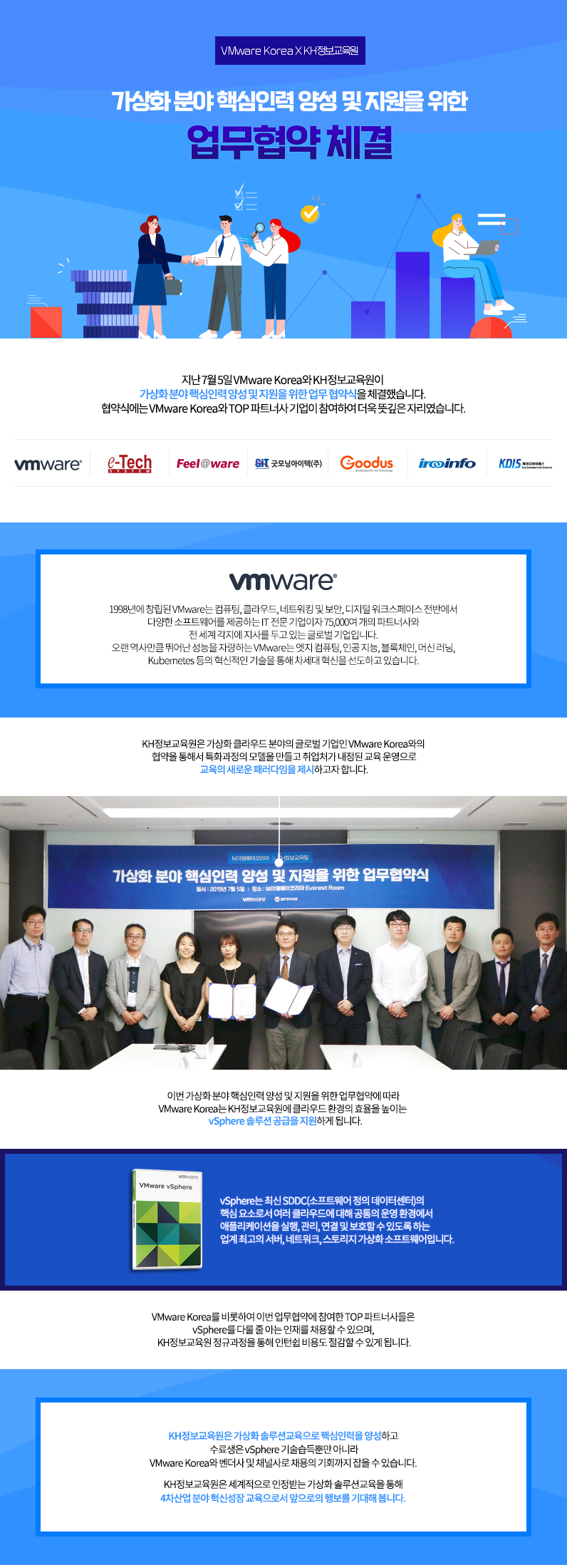 VMware Korea / KH정보교육원 가상화 분야 핵심인력 양성 및 지원을 위한 업무협약 체결