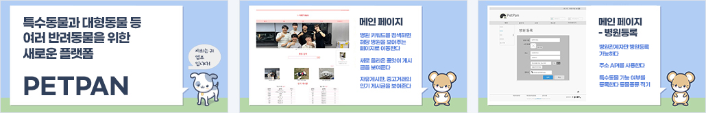 - 회원서비스 : 로그인, 소셜로그인, 마이페이지, 회원가입, 정보수정, 병원등록, 펫정보등록 ,회원탈퇴