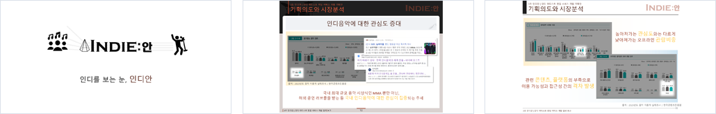 국내 외 인디 음악에 대한 관심도가 집중되는 환경 속에, 높아지는 관심도와는 다르게 낮아지는 오프라인 관람 비중과 관련 콘텐츠 및 플랫폼의 부족으로 이용 가능성과 접근성 간의 격차가 발생하고 있다. 이는 실력 있는 인디 아티스트들이 자기 자신을 홍보하는데 어려움을 겪게 하였고 그로 인해 인디 아티스트들의 경제적 어려움이 가장 큰 문제가 되고 있다. 이를 해소하고자 대중과 인디 아티스트를 연결하는 플랫폼 ‘인디안’을 기획하였고 해당 서비스에서는 무자본/소자본 아티스트들의 음악 활동을 위한 펀딩과 대중들을 위한 리워드를 제공함으로써 아티스트들의 홍보와 수익 발생을 기대하고, 나아가 커뮤니티 기능을 제공하여 인디 문화를 향유하는 사용자들 간의 의견 교류 발생을 증대함으로써 인디 Scene의 발전에 기여하고자 한다. |