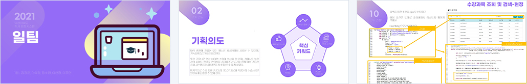 대학 생활에 필요한 모든 메뉴를 시스템에서 사용할 수 있으며, 가독성이 높은 UI를 제공한다. 또한 코로나로 인한 비대면 수업이 활성화 된 현재, 퀵메뉴를 통한 강의 사이트 연결로 편의성을 증대시키고 누구나 쉽게 이용 가능한 결재 시스템을 통해 대면을 최소화 할 수 있게 하였다 |
