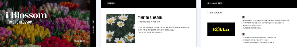 사용자의 취향과 관심사를 고려해 오로지 사용자에 의한, 사용자를 위한 맞춤 꽃 서비스를 제공하는 서비스를 구현해 “꽃을 통한 작지만 확실한 행복” 까지도 구독할 수 있게 하는 것을 목적으로 하였습니다.