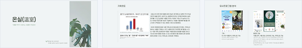 반려식물에 대한 관심이 증가하면서 식물을 키우는 사람들, 이른바 '식집사'가 늘어나고 있고 여러 기업에서도 트렌드를 겨냥해 식물재배기, 씨앗구독 등의 새로운 서비스를 출시했습니다. 이러한 경향을 토대로 식물 커뮤니티의 필요성을 인지했고, 블로그/ 식물구매/ 커뮤니티 등의 다양한 기능을 제공하되 직관적인 UI로 사용자의 편의를 중시한 웹페이지를 기획했습니다. |