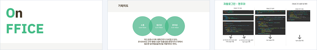 기업에 알맞고 깔끔하게 설계할 수 있도록 맞춤형 그룹웨어 프로그램을 제작하고자 했습니다. 이전에 존재하는 그룹웨어의 복잡하고 어려운 기능들을 쉽고 간단하게 처리할 수 있도록 설계하였고, 그 결과 직관적인 인사 관리와 일일이 작성하지 않아도 되는 간편한 전자 결재, 사내 커뮤니티 활성화 등을 이끌어 내고자 노력했습니다. |