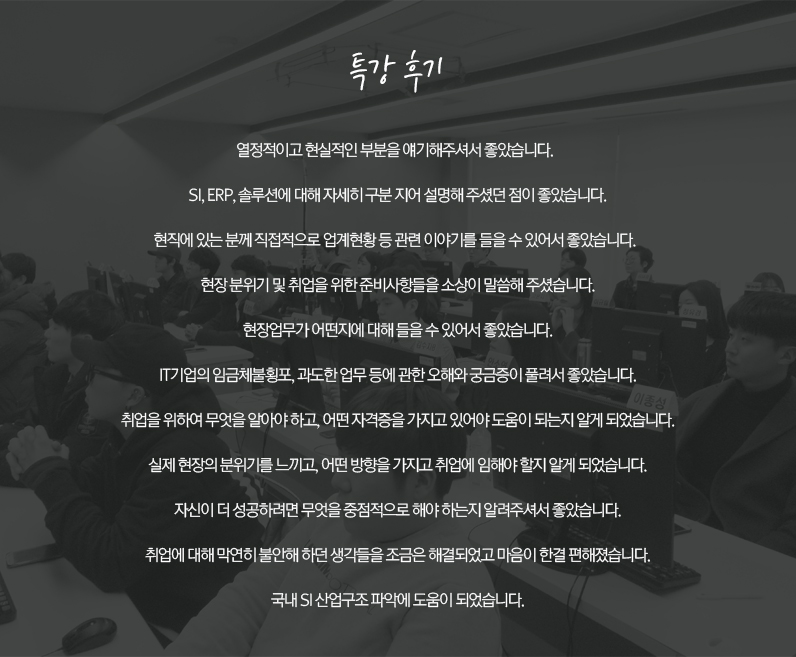 기업체 실무진이 전하는 생생한 현장이야기를 들으실 수 있습니다.