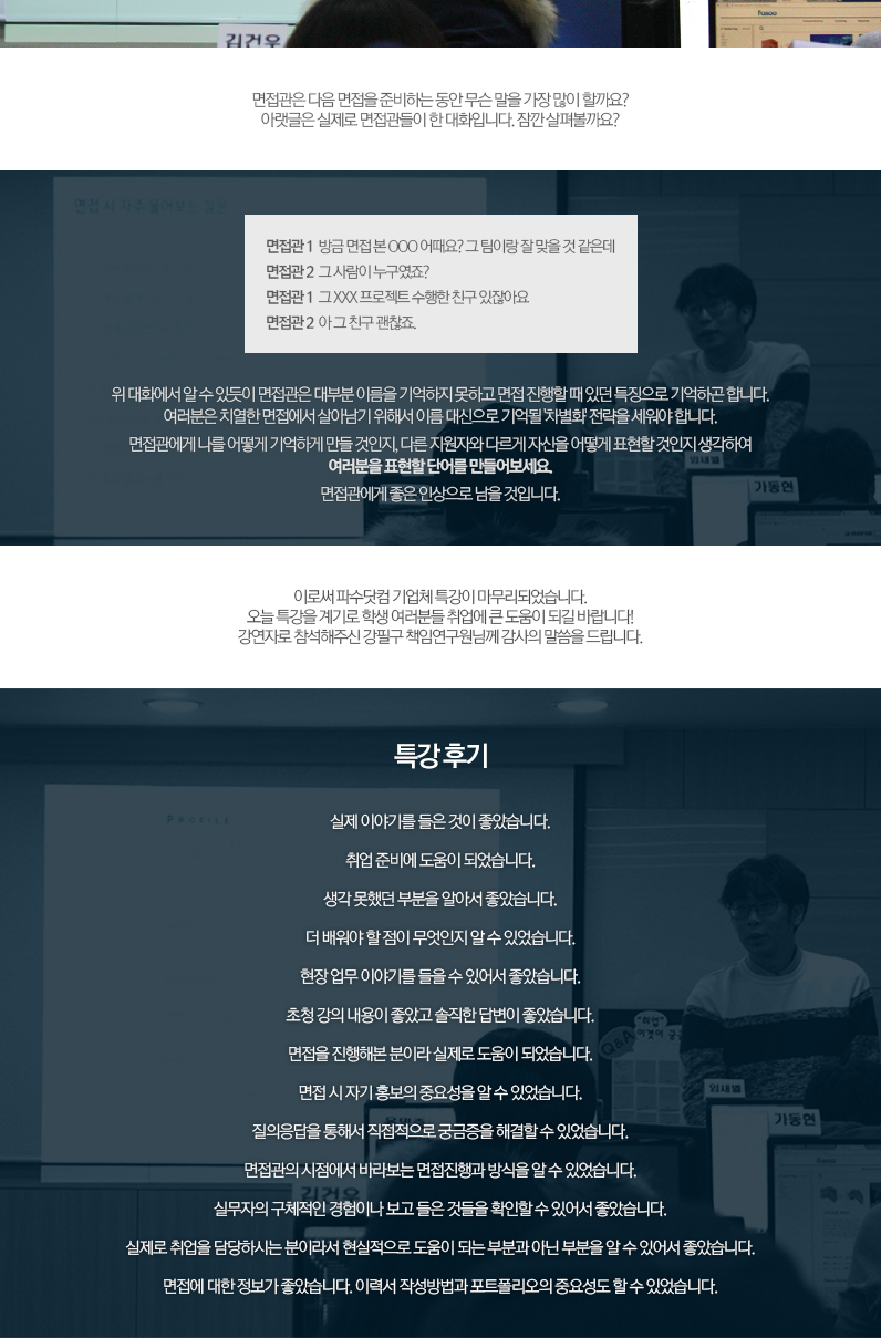 기업체 실무진이 전하는 생생한 현장이야기를 들으실 수 있습니다.