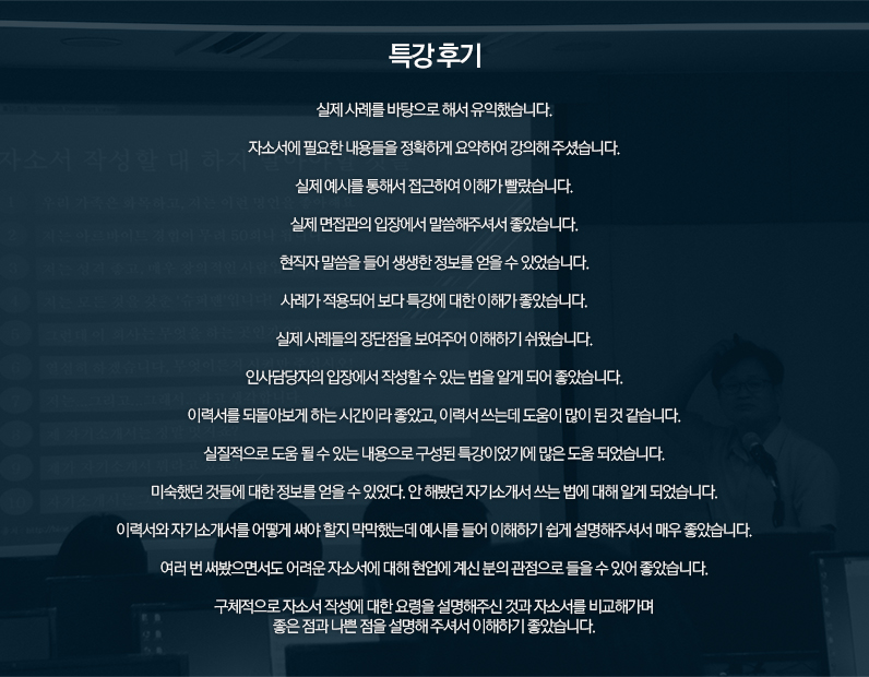기업체 실무진이 전하는 생생한 현장이야기를 들으실 수 있습니다.